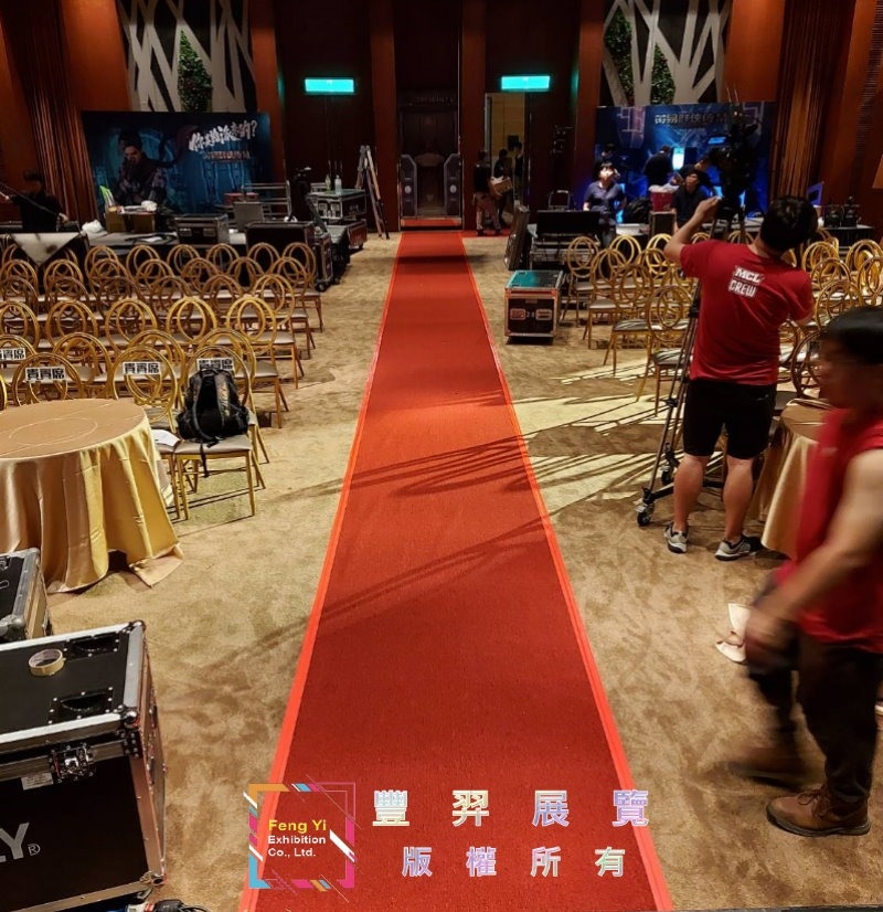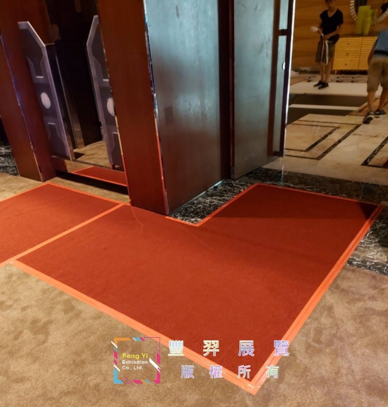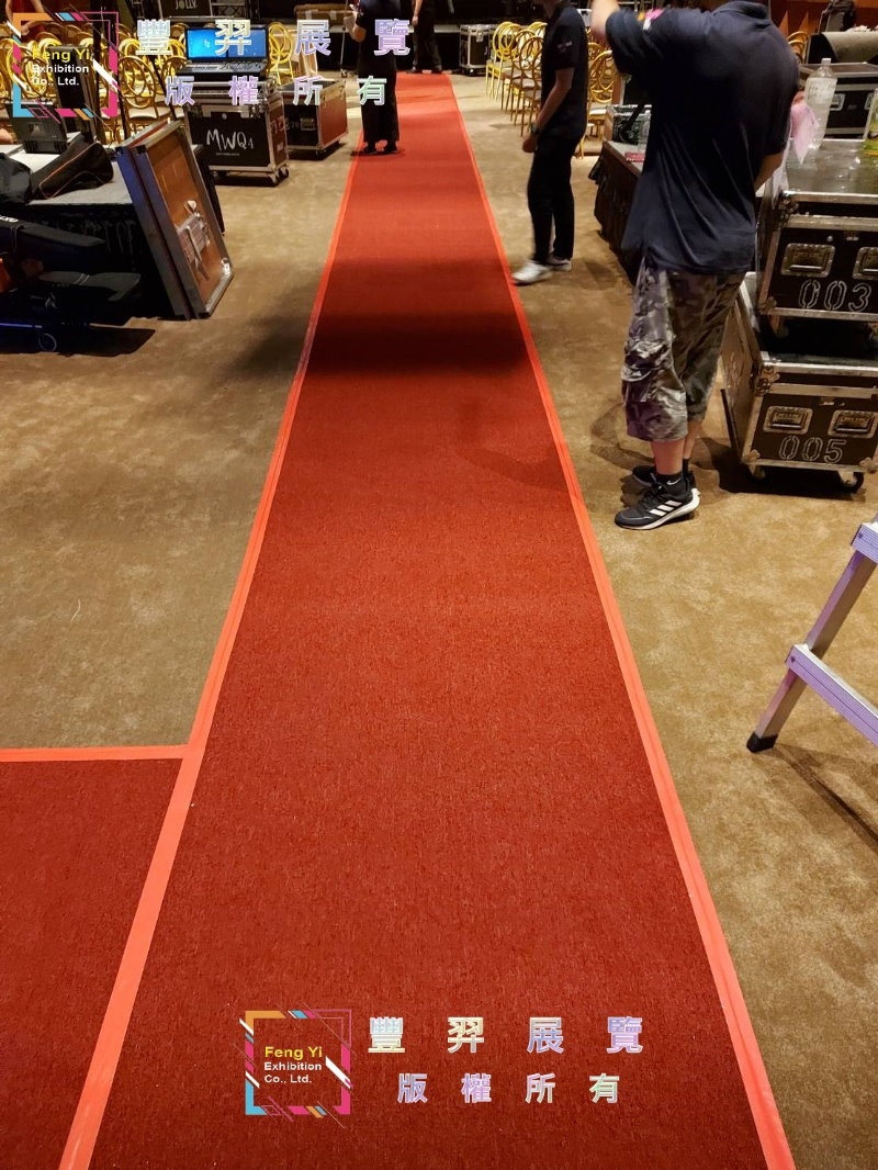 紅地毯來啦~~ 豐羿展覽來到大直典華飯店5樓鋪設暗紅色圈毛地毯走道,紅的大氣