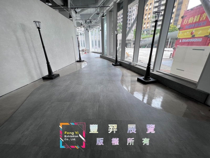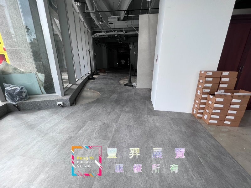 台北科教館地磚施工照片分享~色號:馬洛斯Y2333 地面加貼木板做出造型,鋪設後效果棒棒滴!!!